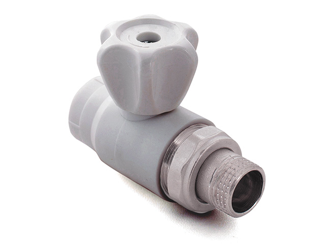 Шаровой кран с полипропиленовым корпусом, прямой. Применяется для подключения радиаторов к разводке из полипропиленовых труб. Позволяет перекрывать поток теплоносителя через отопительный прибор. Подключение крана к радиатору производится с помощью латунного никелированного полусгона, закрепленного на закладной детали накидной гайкой. Соединение с трубой - раструбной сваркой.