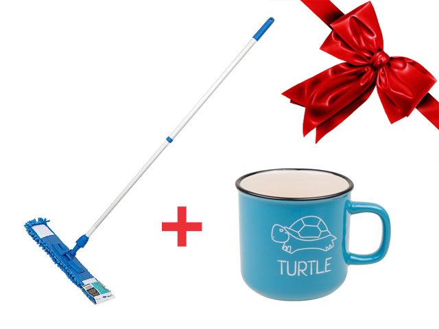 Швабра для пола с насадкой из шенилла, синяя + Кружка кер, 450 мл, серия Черепаха, васильковая (промо) (PERFECTO LINEA) купить в Минске: