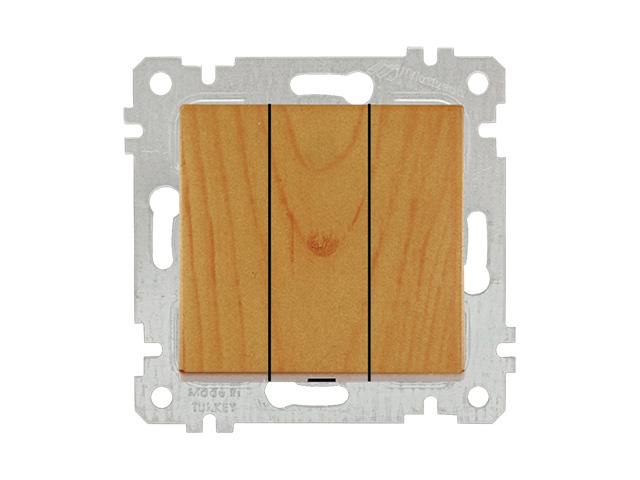 Выключатель 3-клав. (скрытый, без рамки, пруж. зажим) дуб, RITA, MUTLUSAN (10 A, 250 V, IP 20)