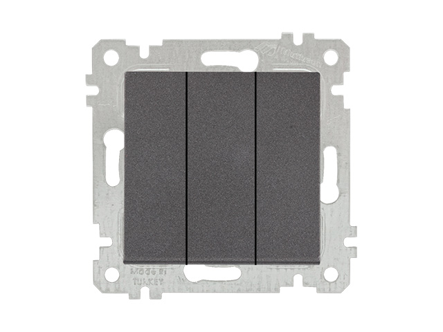 Выключатель 3-клав. (скрытый, без рамки, пруж. зажим) дымчатый, RITA, MUTLUSAN (10 A, 250 V, IP 20)