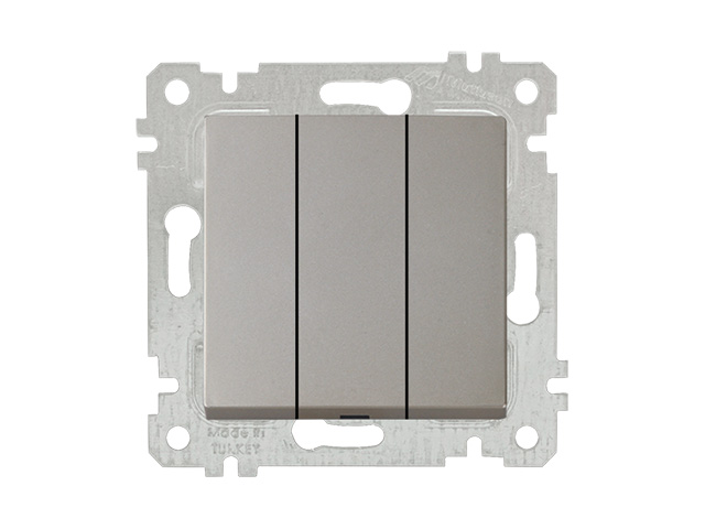 Выключатель 3-клав. (скрытый, без рамки, пруж. зажим) титан, RITA, MUTLUSAN (10 A, 250 V, IP 20)