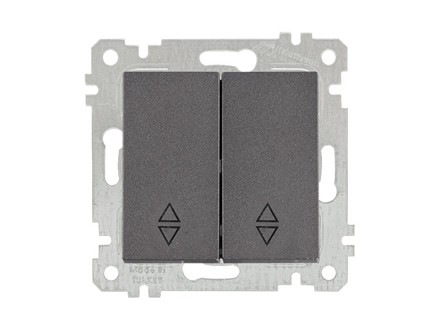 Выключатель проходной 2-клав. (скрытый, без рамки, пруж. зажим) дымчатый, RITA, MUTLUSAN (10 A, 250 V, IP 20)