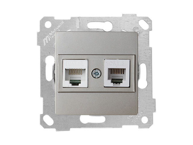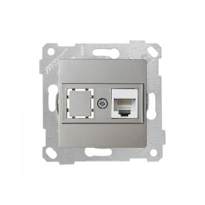 Розетка телефонная + компьютерная (RJ12+Cat5e, скрытая, без рамки) титан, RITA, MUTLUSAN