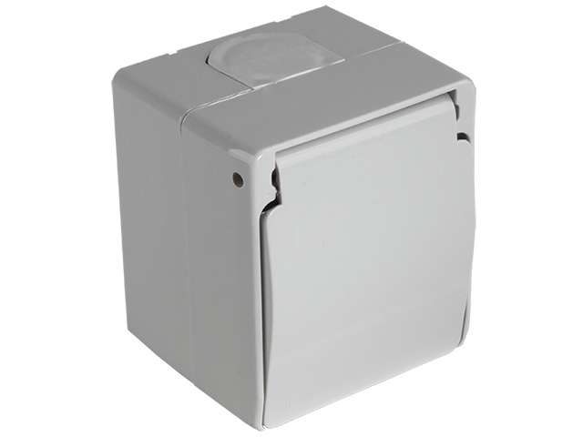 Розетка 1-ая (открытая, с/з, с крышкой) серая, NEMLIYER, MUTLUSAN (16 A, 250 V, IP 44) купить в Минске:
