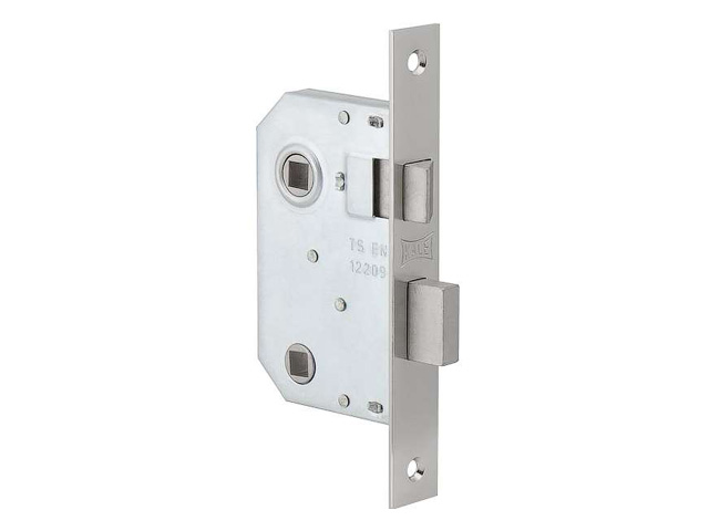 Врезной замок для межкомнатных дверей. Снабжен механизмом дополнительного закрывания, так называемым WC-запиранием. С ответной планкой.