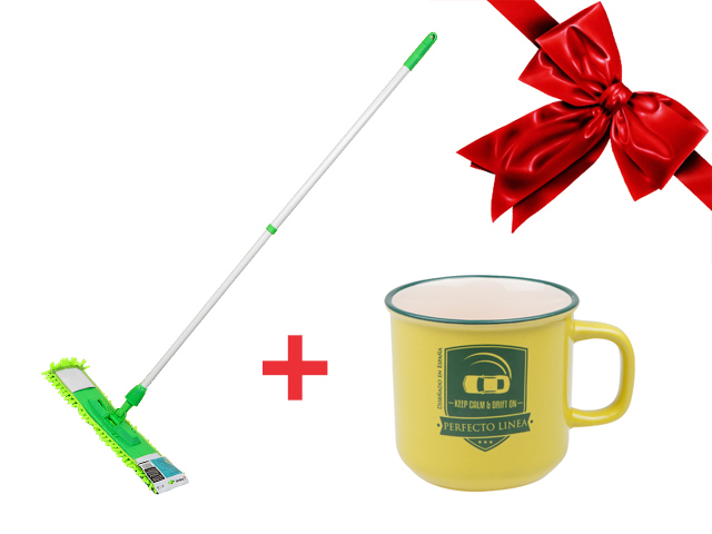 Швабра для пола с насадкой из шенилла, зеленая + Кружка кер, 450 мл, серия Дрифт, салатовая (промо) (PERFECTO LINEA)