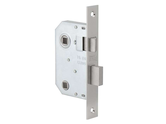 Врезной замок для межкомнатных дверей. Снабжен механизмом дополнительного закрывания, так называемым WC-запиранием. С ответной планкой.