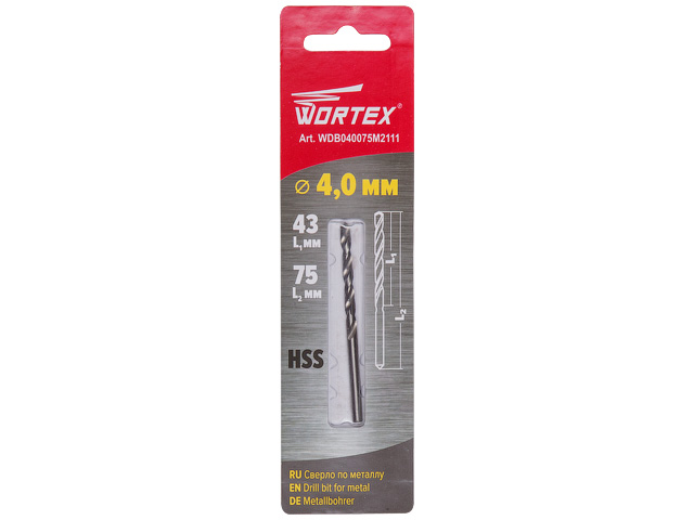 Сверло по металлу ц/х 4.0х43х75 мм HSS WORTEX купить в Минске: