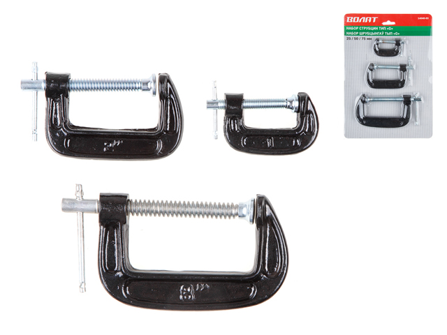 Набор струбцин G-образных 25мм, 50мм, 75мм ВОЛАТ