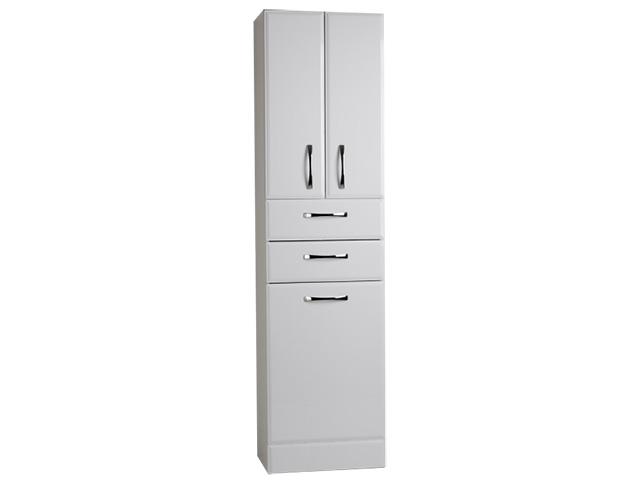 Шкаф Романа 50 - это шкаф состоящий из четырех функциональных частей. Верхняя часть со съемной полкой закрывается двумя распашными фасадами. В центральной части находится два функциональных выдвижных ящика. В нижней части находится бельевая корзина, дверь шкафа открывается "на себя".