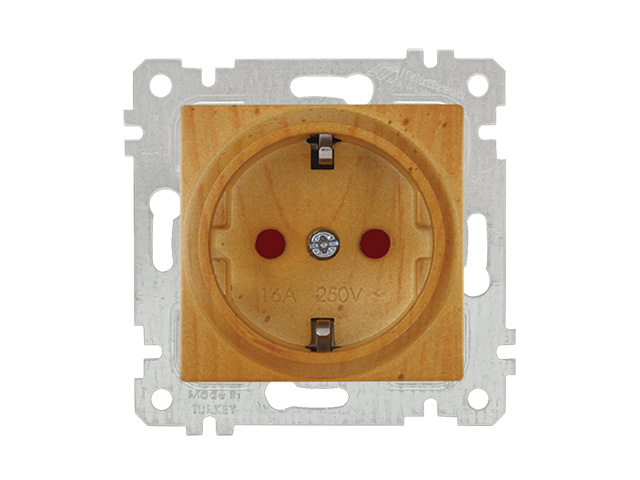 Розетка 1-ая (скрытая, без рамки, с/з, шторки) дуб, RITA, MUTLUSAN (16 A, 250 V, IP 20)