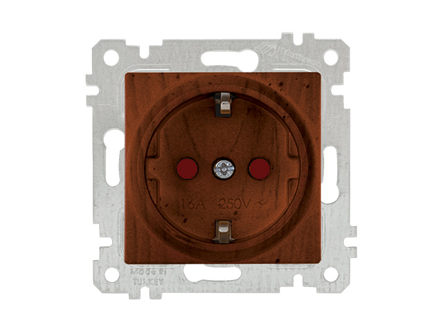 Розетка 1-ая (скрытая, без рамки, с/з, шторки) орех, RITA, MUTLUSAN (16 A, 250 V, IP 20)