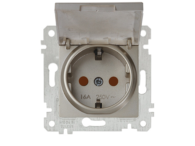 Розетка 1-ая (скрытая, без рамки, с/з, шторки, с крышкой) титан, RITA, MUTLUSAN (16 A, 250 V, IP 20)