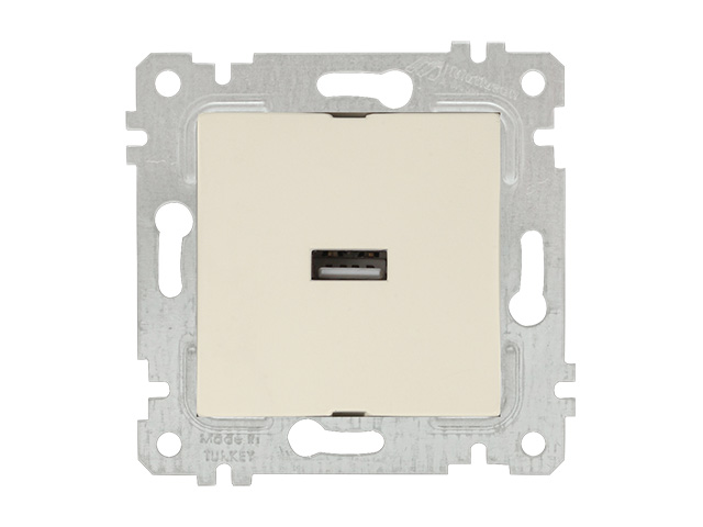 Розетка 1-ая USB (скрытая, без рамки) кремовая, RITA, MUTLUSAN (USB-зарядка, 5V-2.1A)