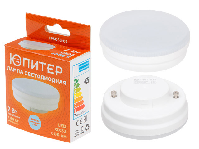 Лампа светодиодная GX53 7 Вт 170-240В 4000К ЮПИТЕР (60 Вт аналог лампы накал., 560Лм, нейтральный белый свет)