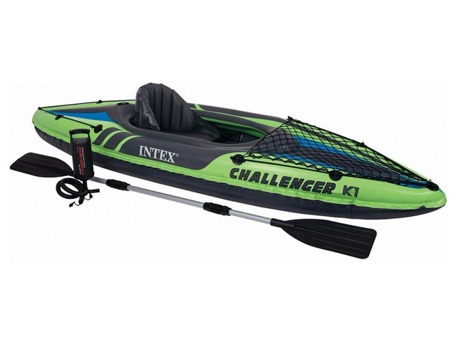 Надувная лодка-каяк одноместная Challenger K1, 274x76x33 см + весла алюмин., насос ручной, INTEX
