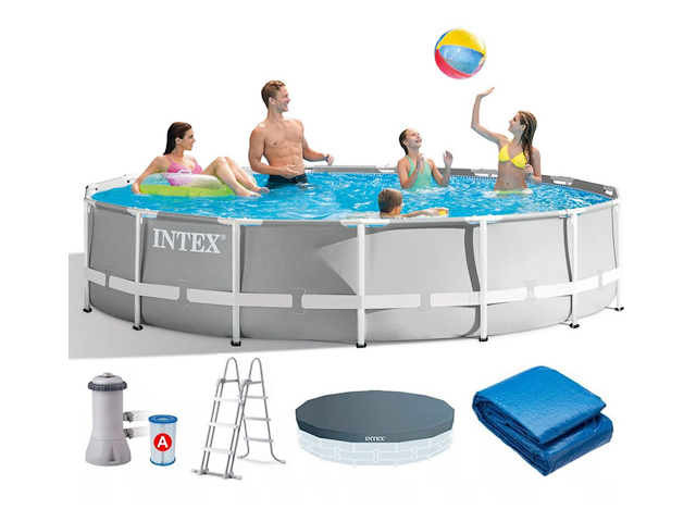 Каркасный бассейн Prism Frame, круглый, 457х107 см + фильтр-насос, лестн., тент, подстилка, INTEX (от 6 лет)