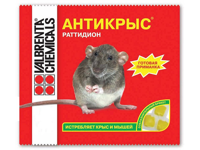 Отрава от грызунов (мягкие брикеты) Раттидион, сыр Моцарелла (п/э пакет 100 гр.) (VALBRENTA CHEMICALS)
