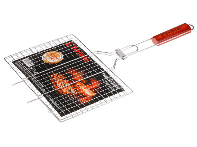 Решетка-гриль, 320x230 мм, нержавеющая сталь, деревянная ручка, PERFECTO LINEA (Изготовлена из 100% нержавеющей стали. Гигиенична, безопасна, долгове