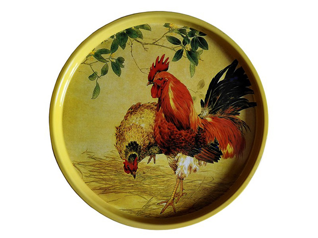 Поднос жестяной "Петухи" 297х277х16мм., ЖЕСТЕУПАКОВКА