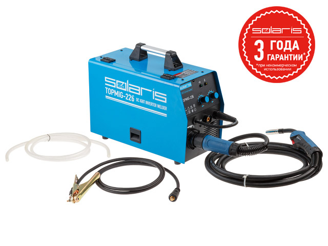 Полуавтомат сварочный Solaris TOPMIG-226 с горелкой 5 м (220В, MIG/FLUX, евроразъем, горелка 5 м, смена полярности)
