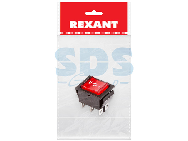 Выключатель клавишный 250V 15А (6с) ON-OFF-ON (RWB-509, SC-767) красный с подсветкой и нейтралью(инд (REXANT)