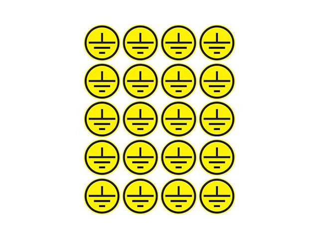 Набор знаков электробезопасности <Заземление> состоит из 20 круглых наклеек, каждая из которых 2 сантиметра диаметром. Данные знаки предназначены для подтверждения безопасности электрооборудования. Защитное заземление - это преднамеренное электрическое соединение с землей или ее эквивалентом металлических нетоковедущих частей, которые могут оказаться под напряжением. Подобная маркировка соответствует современным нормам.