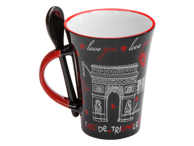 Кружка керамическая с ложкой, 280 мл, Французский поцелуй, черная, PERFECTO LINEA (Супер цена!) купить в Минске:
