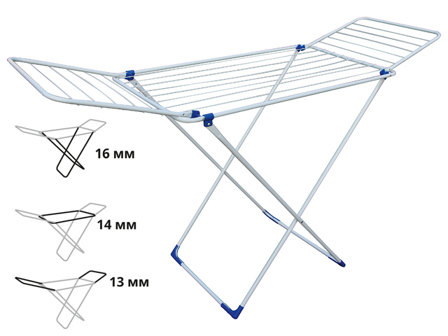 Сушилка для белья напольная, 18м, серия Stella, бело-синяя, PERFECTO LINEA (Сушильное полотно - 18 метров, размер 172х56х90.)