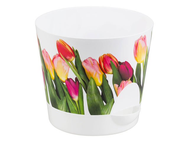 Кашпо НИКА ДЕКО 0,8л с прикорневым поливом (тюльпаны) IDEA