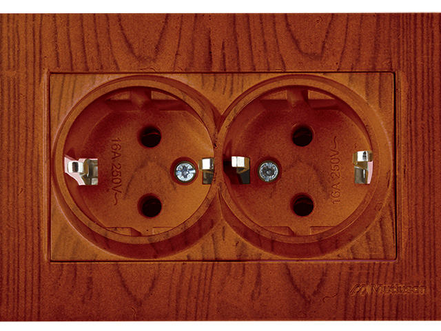 Розетка 2-ая (скрытая, с/з) орех, RITA, MUTLUSAN (16 A, 250 V, IP 20, без рамки)