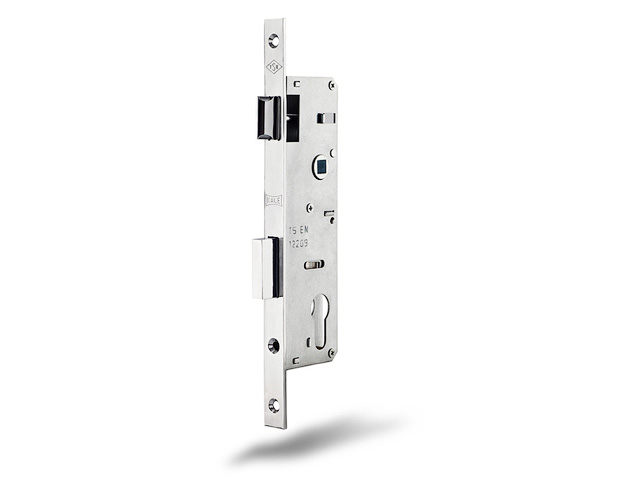 Корпус замка врезного цилиндрового KALE 153 P предназначен для узкопрофильных дверей. Корпус выполнен из оцинкованной стали, ригель из цинкового сплава, защелка из латуни.
