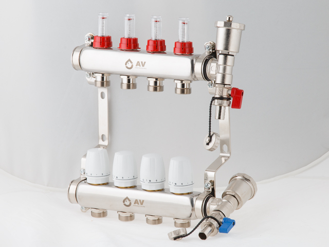 Предназначена для распределения и регулировки систем теплого пола. Материал изготовления коллектора - нержавеющая сталь.
