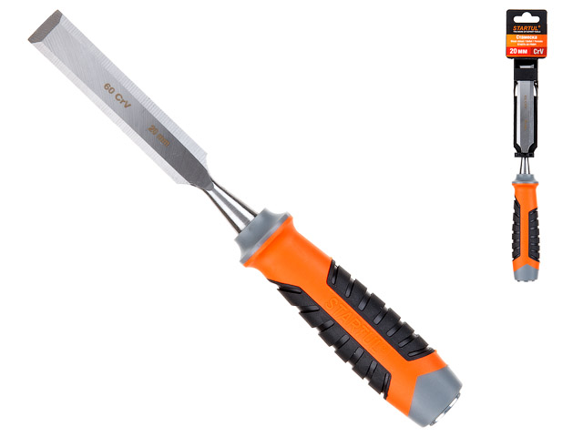 Стамеска плоская 20мм STARTUL PROFI (ST4075-20) (обрезиненная рукоятка, металлический затыльник)