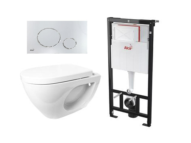 Инсталляционный сет 5 в 1 Rimflow с кнопкой управления M670+безободковый унитаз Alca-Трино,Alcaplast