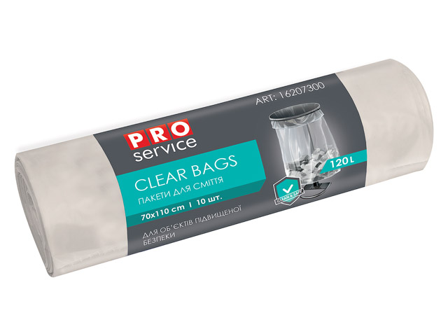 Пакеты для мусора CLEAR BAGS, 120 л, 10 шт., прозрачные, PROservice (Размер единицы: 70х110 см.Толщина: 21 мкм.)