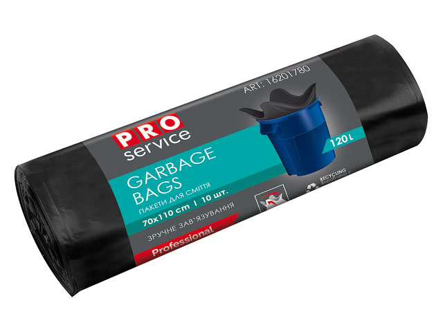 Пакеты для мусора с ушками, 120 л, 10 шт., черные, PROservice (Размер единицы: 90х110 см.Толщина: 21 мкм.)