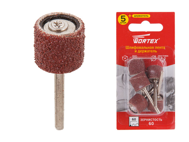 Шлифовальная лента 13 мм, зерно 60 + держатель WORTEX (раб. диам. 13 мм, диам. хвостовика 3.2 мм, зерно 60, 35000 об/мин)