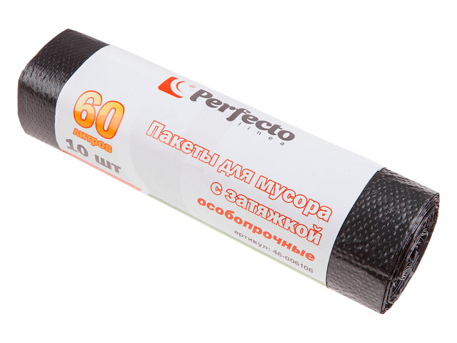 Пакеты для мусора особопрочные с затяжкой, 60 л, 10 шт., PERFECTO LINEA