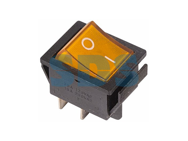 Выключатель клавишный 250V 16А (4с) ON-OFF желтый с подсветкой предназначен для коммутации электрических цепей переменного тока напряжением до 250В. Клавишные (Рокерные) выключатели применяются в качестве комплектующих изделий различного электрооборудования (в сетевых фильтрах и удлинителях, аудио-оборудовании, блоках питания, электроустановках на различных производствах, автомобилях, и многих других местах). Такой клавишный переключатель имеет два положения. Принцип действия основан на перемещении клавиши в одну из позиций. Для переключения в нужное положение требуется приложить некоторые усилия на клавишу. Монтаж осуществляется без применения винтов на плоских панелях толщиной от 0.8мм до 3мм. Подключение контактов осуществляется плоской клеммой 6.6мм, либо с помощью пайки.