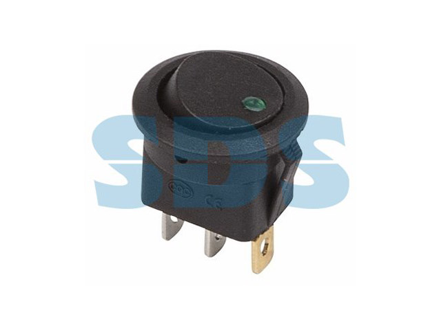 Выключатель клавишный круглый 12V 16А (3с) ON-OFF черный с зеленой подсветкой предназначен для коммутации электрических цепей. Клавишные (Рокерные) выключатели применяются в качестве комплектующих изделий различного электрооборудования (аудио-оборудовании, блоках питания, электроустановках на различных производствах, автомобилях, и многих других местах), с напряжением тока не более 12В. Такой клавишный переключатель имеет два положения. Принцип действия основан на перемещении клавиши в одну из позиций. Для переключения в нужное положение требуется приложить некоторые усилия на клавишу. Монтаж осуществляется без применения винтов на плоских панелях толщиной от 0.8мм до 3мм. Подключение контактов осуществляется плоской клеммой, либо с помощью пайки.