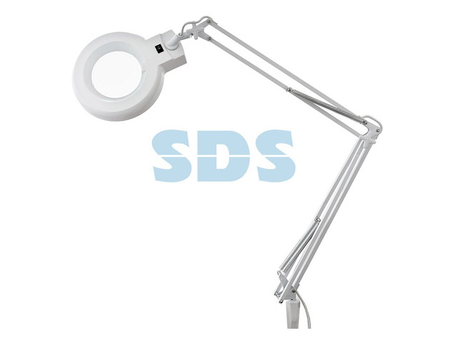 Лупа на струбцине круглая настольная 3Х с подсветкой, белая REXANT предназначена для визуального увеличения различных мелких предметов или их фрагментов. Она используется в косметологии, в тату-салонах, при выполнении ювелирных и радиомонтажных работ, при ремонте часов, в биологии и медицине, в швейном и вышивальном деле, для организации труда людей со слабым зрением, а также для других работ, где требуется дополнительное увеличение и подсветка рабочего поля. Такая оптическая система состоит из линзы, удобного пантографического механизма и бестеневой подсветки.Основные преимущества:1. Линза изготовлена из стекла. Обеспечит наиболее четкое изображение с минимальным уровнем искажения.2. Бестеневая всесторонняя подсветка предмета. Возможна работа в условиях отсутствия внешнего освещения.3. Удобный пантографический механизм, состоящий из звеньев. Обеспечит хорошую устойчивость и точную фиксацию лупы в пространстве в необходимом положении.4. Рабочий радиус регулировки механизма достигает 100 см.5. Струбцинное крепление к столу. Зафиксирует лампу-лупу на любой плоской поверхности.6. Экономия электроэнергии. Потребляет в рабочем состоянии 22 Вт.7. Встроенный электронный блок управления, благодаря которому лампа излучает ровный свет без мерцания.Технические характеристики:- размер линзы: 127 мм- оптическая сила линзы: 3 диоптрии - 3D (увеличение 1.75 раза)- источник света: люминесцентная кольцевая лампа (G10q)- потребляемая мощность лампы: 22 Вт- цвет корпуса: белый- напряжение питания: АС 220-230 В, 50 Гц- размер коробки: 56x54x33 смЛупа с подсветкой REXANT необходима не только любому специалисту для выполнения работ с высокой точностью и безопасностью для клиента, но также она будет незаменимым прибором в быту.