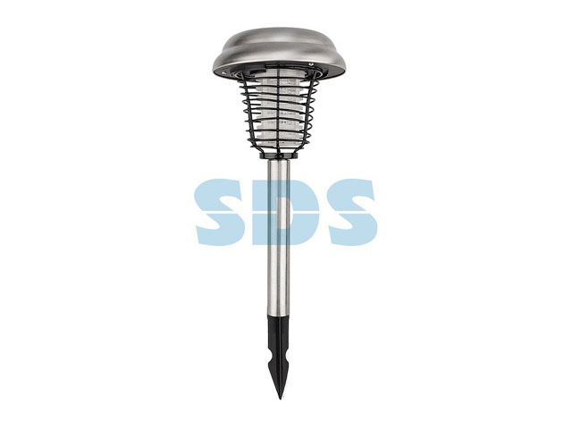 Антимоскитный садовый светильник сочетает сразу два устройства в одном: уничтожитель летающих насекомых и светильник для подсветки газонов, цветников и дорожек. Принцип действия электрического уничтожителя насекомых (комаров, мошкары) - основан на использовании ультрафиолетового излучения в специальном диапазоне (350-400 нм). Многие летающие насекомые весьма чувствительны к данному диапазону УФ-излучения и он привлекает их. Подлетая к лампе, насекомые замыкают собой прутья металлической решетки под напряжением и погибают от электрического разряда. Решетка защищена от случайного прикосновения, поэтому устройство безопасно для человека и домашних животных.