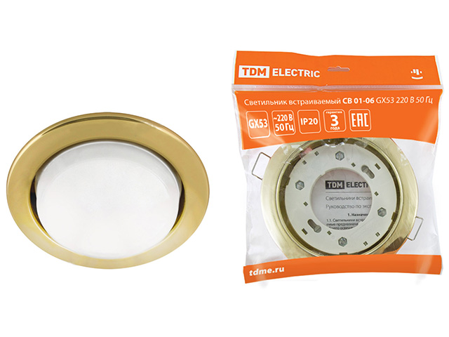 Светильник встраиваемый СВ 01-06 GX53 220 В 50 Гц золото TDM (лампа в комплект не входит)