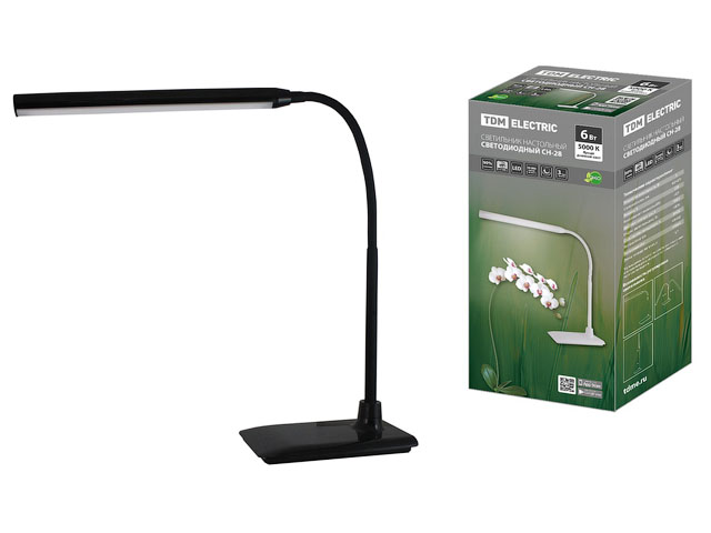 Светильник светодиодный настольный СН-28, сенсор-диммер, 220 В, 6 Вт, 5000 К, черный TDM