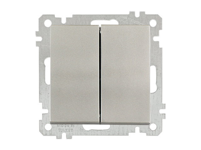 Выключатель 2-клав. (скрытый, без рамки, пруж. зажим) титан, DARIA, MUTLUSAN (10 A, 250 V, IP 20) купить в Минске: