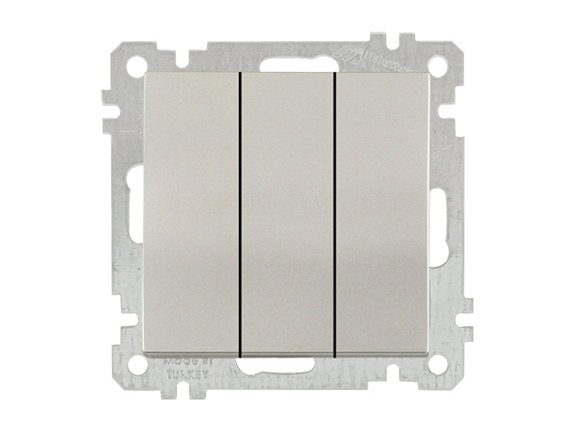 Выключатель 3-клав. (скрытый, без рамки, пруж. зажим) титан, DARIA, MUTLUSAN (10 A, 250 V, IP 20) купить в Минске:
