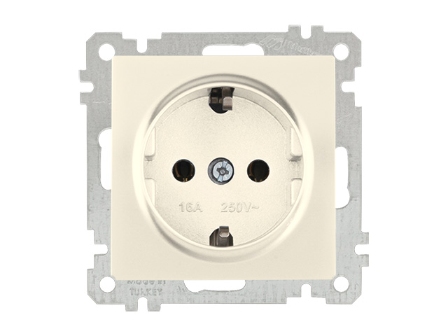Розетка 1-ая (скрытая, без рамки, с/з) кремовая, DARIA, MUTLUSAN (16 A, 250 V, IP 20)