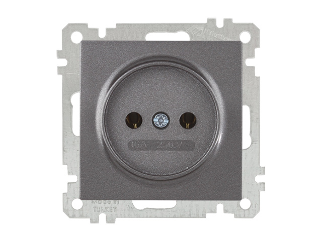 Розетка 1-ая (скрытая, без рамки, б/з) дымчатая, DARIA, MUTLUSAN (16 A, 250 V, IP 20)