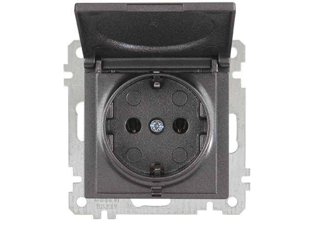Розетка 1-ая (скрытая, без рамки, с/з, с крышкой) дымчатая, DARIA, MUTLUSAN (16 A, 250 V, IP 20) купить в Минске: